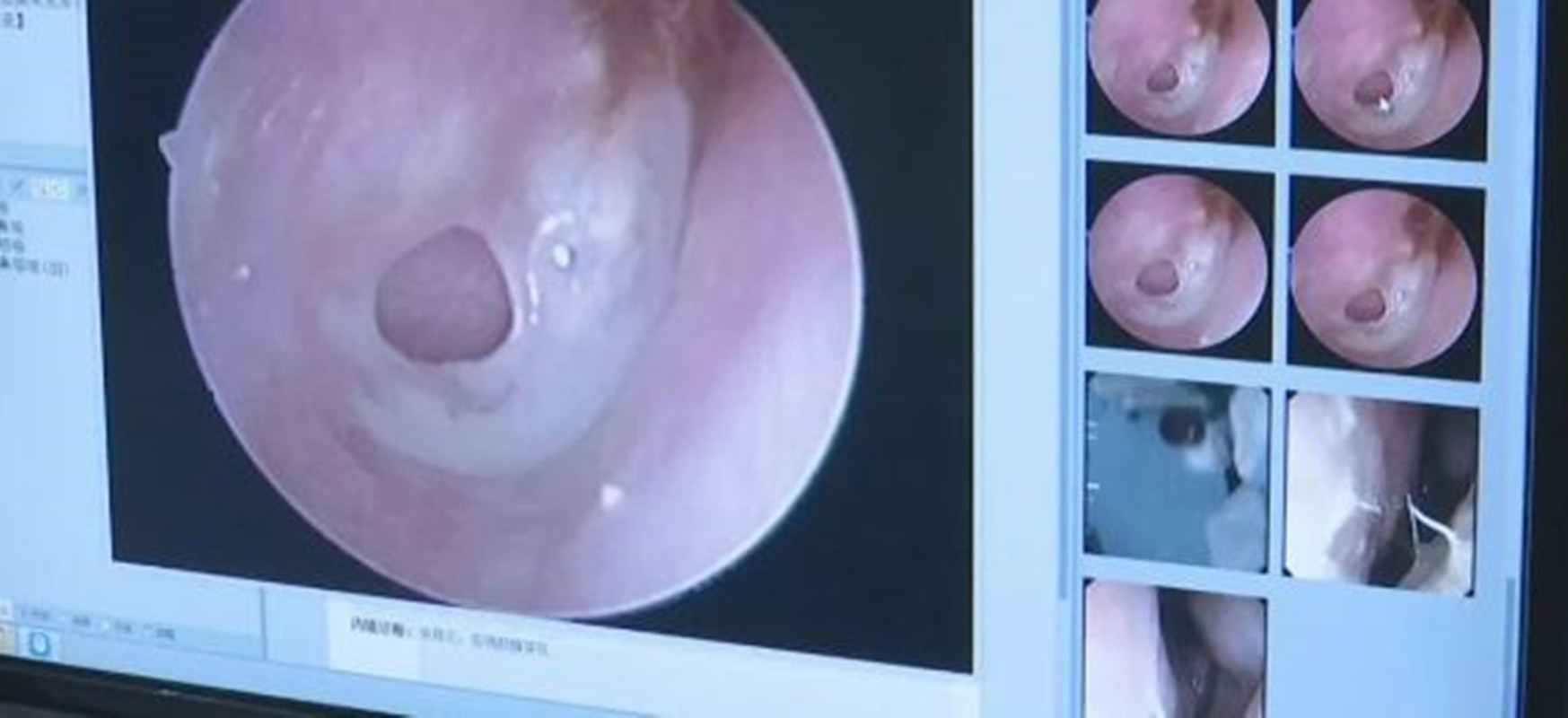 Dưới ống soi tai video, bác sĩ phát hiện màng nhĩ trái của Tiểu Hoa có lỗ thủng và vết máu. Do đó, bác sĩ chẩn đoán cô bị thủng màng nhĩ do chấn thương.