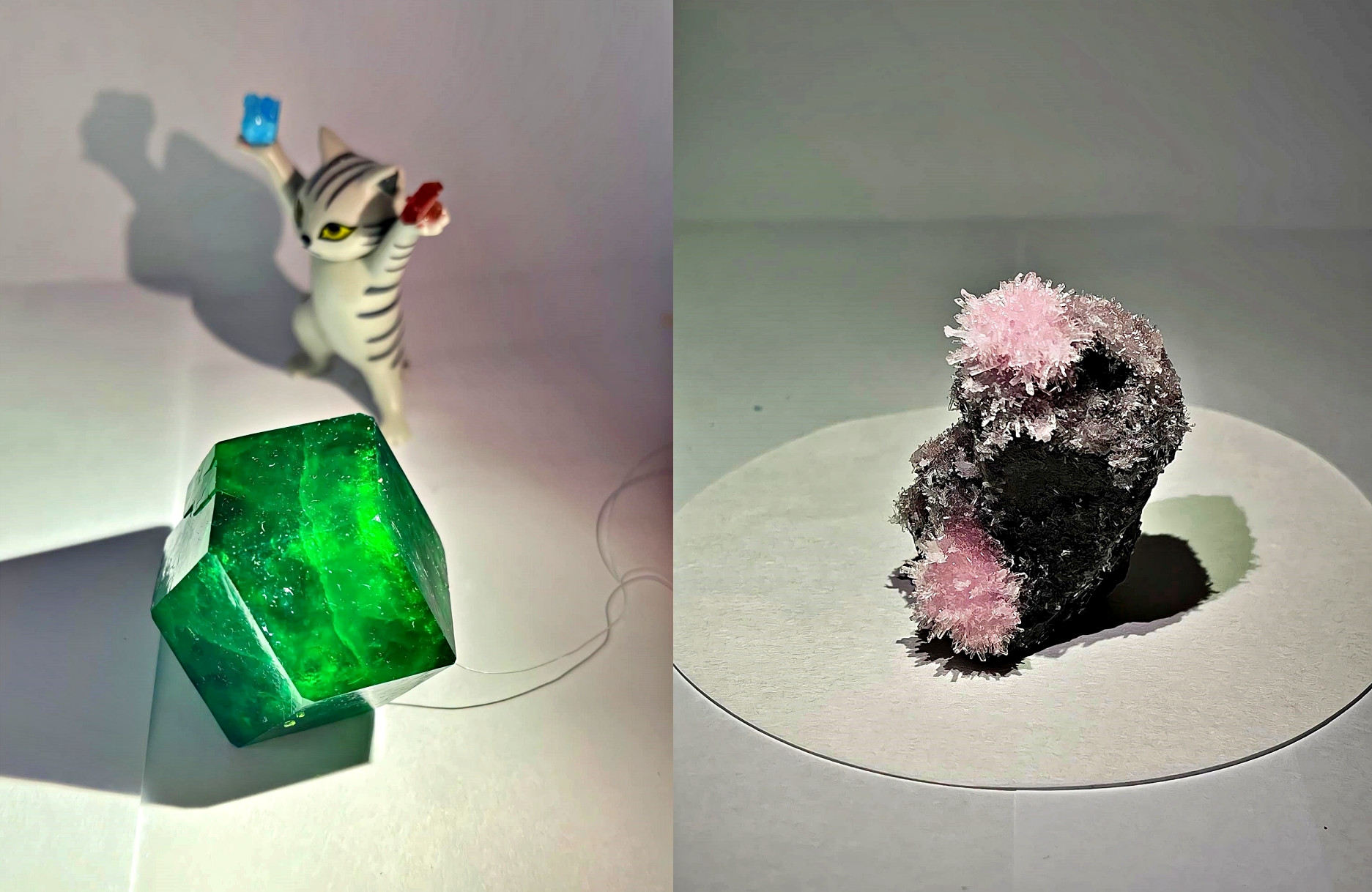 Tùy thuộc vào chất hóa học ban đầu, mầm tinh thể khi trưởng thành sẽ có hình dạng, kích thước, màu sắc khác nhau. “Sau khi thành phẩm, chúng đều long lanh, lấp lánh như những viên đá nhiều màu”, Nhi nói.
