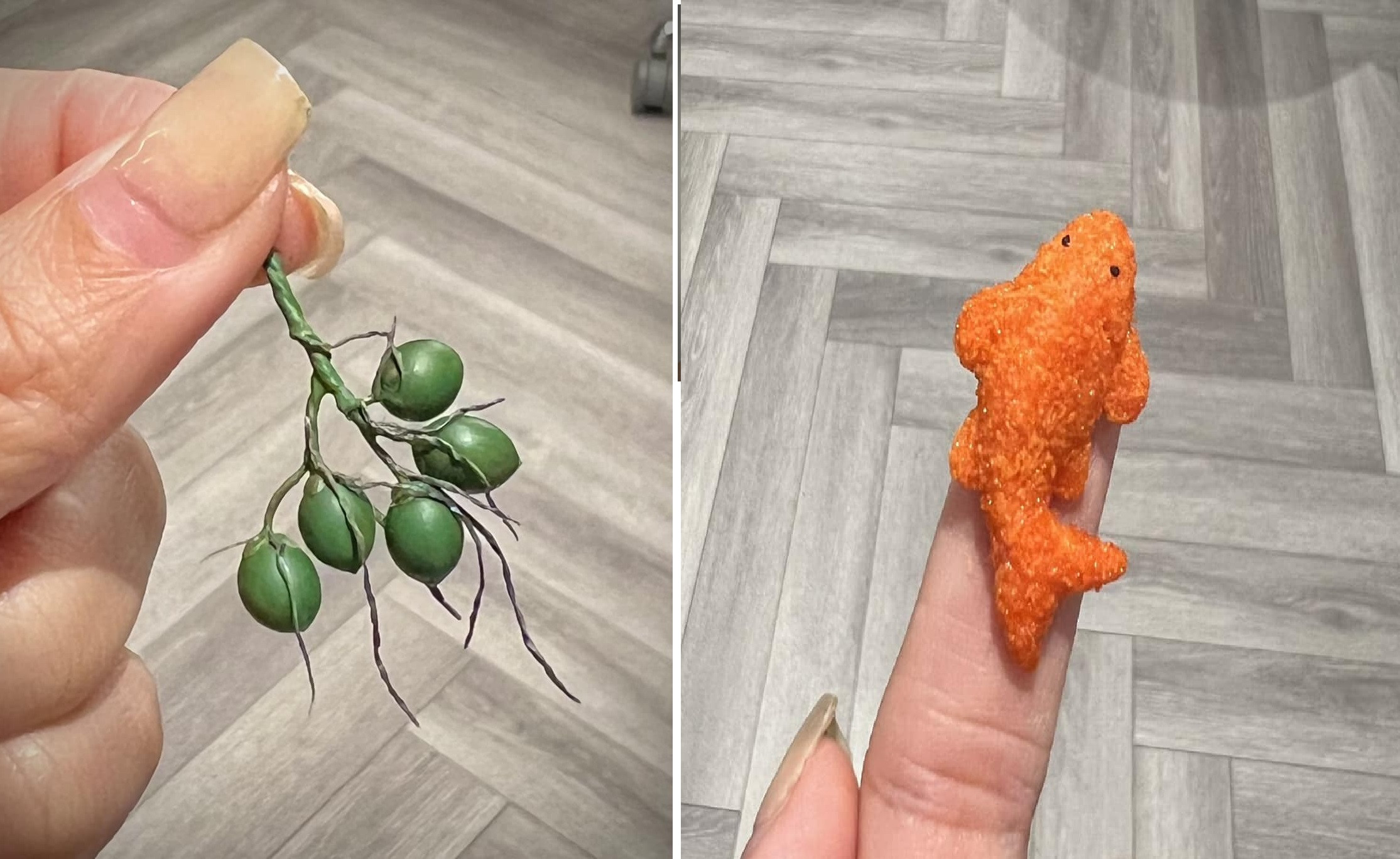 Từ 3 tháng trước chị Quỳnh đã bắt tay vào tạo hình các sản phẩm để làm một bộ mô hình mâm cỗ cúng ngày Tết, ngày 23 tháng Chạp đầy đủ thành phần như mâm cỗ cúng đời thực. Mỗi sản phẩm có kích thước nhỏ nhất vài milimet cho tới kích thước lớn nhất là 13cm.