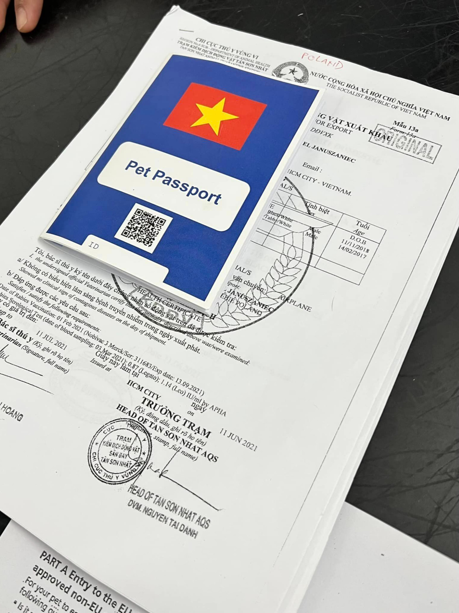 Khi Fifi được thông báo đạt, chị Trang đến Cục Thú y vùng VI để hoàn thiện các giấy tờ kiểm dịch. “Bên phòng khám thú cưng có dịch vụ làm thủ tục nên mình chỉ cần đóng phí thôi”, chị Trang cho biết.
