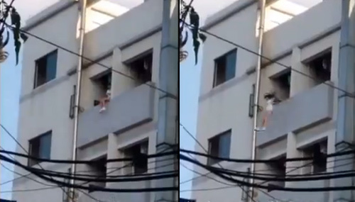 Cô gái nhảy xuống đất như mèo từ tầng 6