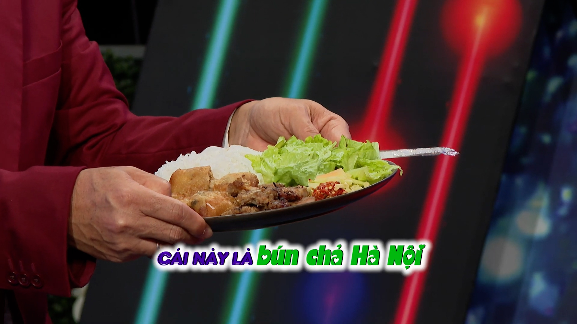 | Món bún chả được Văn Đại mang lên sân khấu mời bạn gái thưởng thức. |