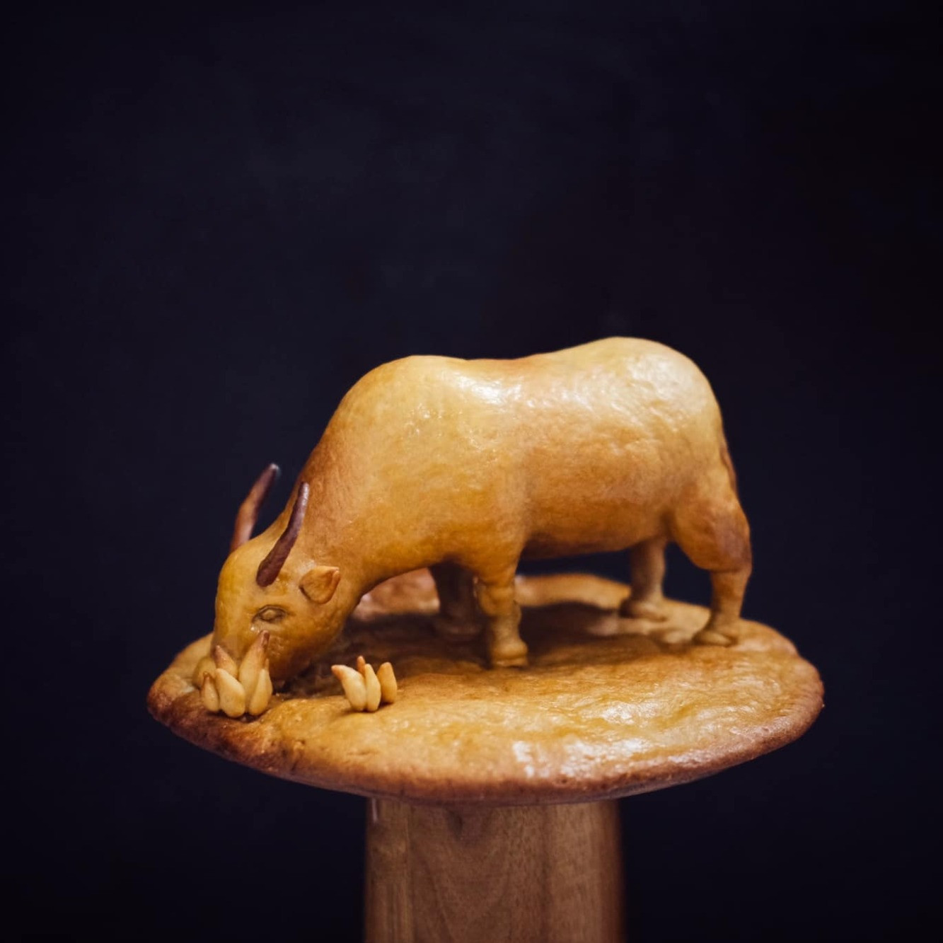 “Bánh hình con gà và trâu khi vừa ra lò đã được nhiều người đặt mua. Nhưng tôi làm chỉ để thỏa mãn đam mê và sáng tạo của bản thân chứ chưa kinh doanh những tác phẩm này“, Dương tâm sự.