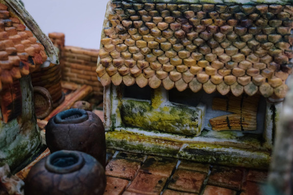 Tất cả các chi tiết đều được Dương và nhóm bạn nặn thủ công bằng tay. Từ viên ngói, viên gạch, bức tường, lá cây... Dương đều thực hiện một cách tỉ mỉ, cẩn thận, làm sao để đẹp và thật nhất.