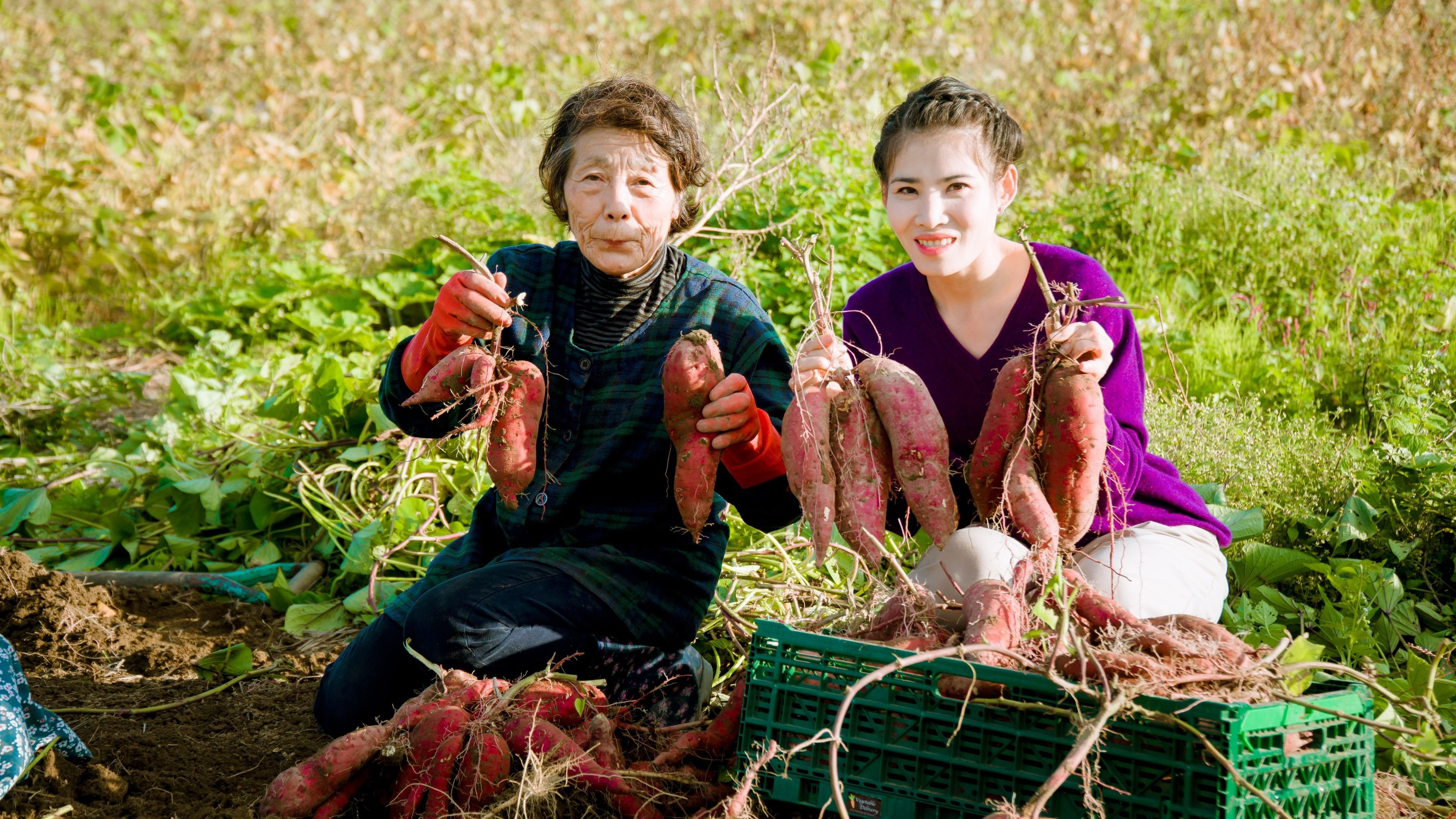 Ảnh chị Thúy và mẹ chồng thu hoạch khoai lang.Dần dần, bố mẹ chồng chị chấp nhận lui về phía sau, nhường lại quyền điều hành công ty cho vợ chồng chị Thúy. Vượt qua sự khác biệt về lối sống, văn hóa, cô gái Việt Nam nhỏ nhắn đã trở thành nhân vật quan trọng trong công ty của gia đình chồng.
