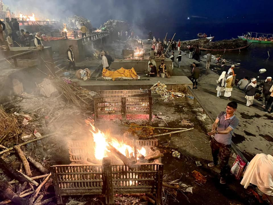 Sau đó, người ta khiêng xác ra sông, gột rửa bằng nước sông Hằng và bôi một loại dầu để giảm bớt mùi khi đốt. Tiếp đến, nghi thức hỏa táng được tiến hành ngay tại Manikarnika Ghat.