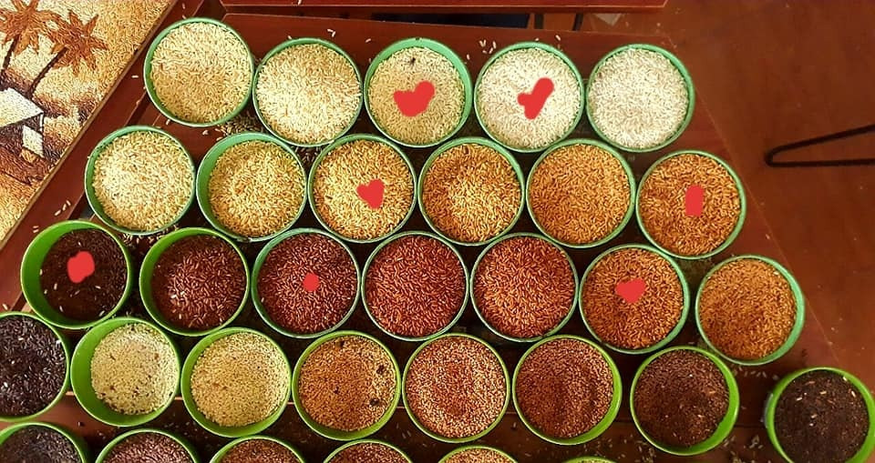 Việt Nam có nhiều giống lúa khác nhau, mỗi loại cho hạt gạo có hình dáng, kích thước khác nhau. Loại gạo chị Vân thường dùng là hạt thon dài, chắc, bóng. Khi cần làm nổi bật các họa tiết chị sử dụng loại hạt có độ tròn, to hơn.