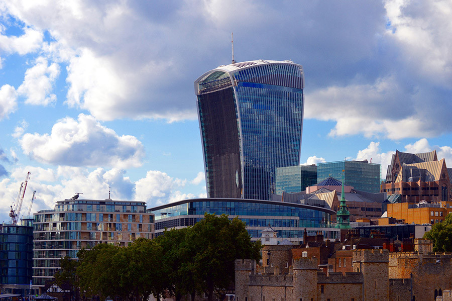 Nằm ngay phía Bắc của Sông Thames, toà nhà Walkie Talkie đã gây ra một loạt sự cố vì hiện tượng phản xạ ánh nắng mặt trời qua bề mặt kính. Như một chiếc xe ô tô đậu gần toà nhà bị cháy, chiếc thảm trong của một cửa hàng bị cháy vì nhiệt độ cao, nhiều chiếc xe đạp bị cháy yên xe…