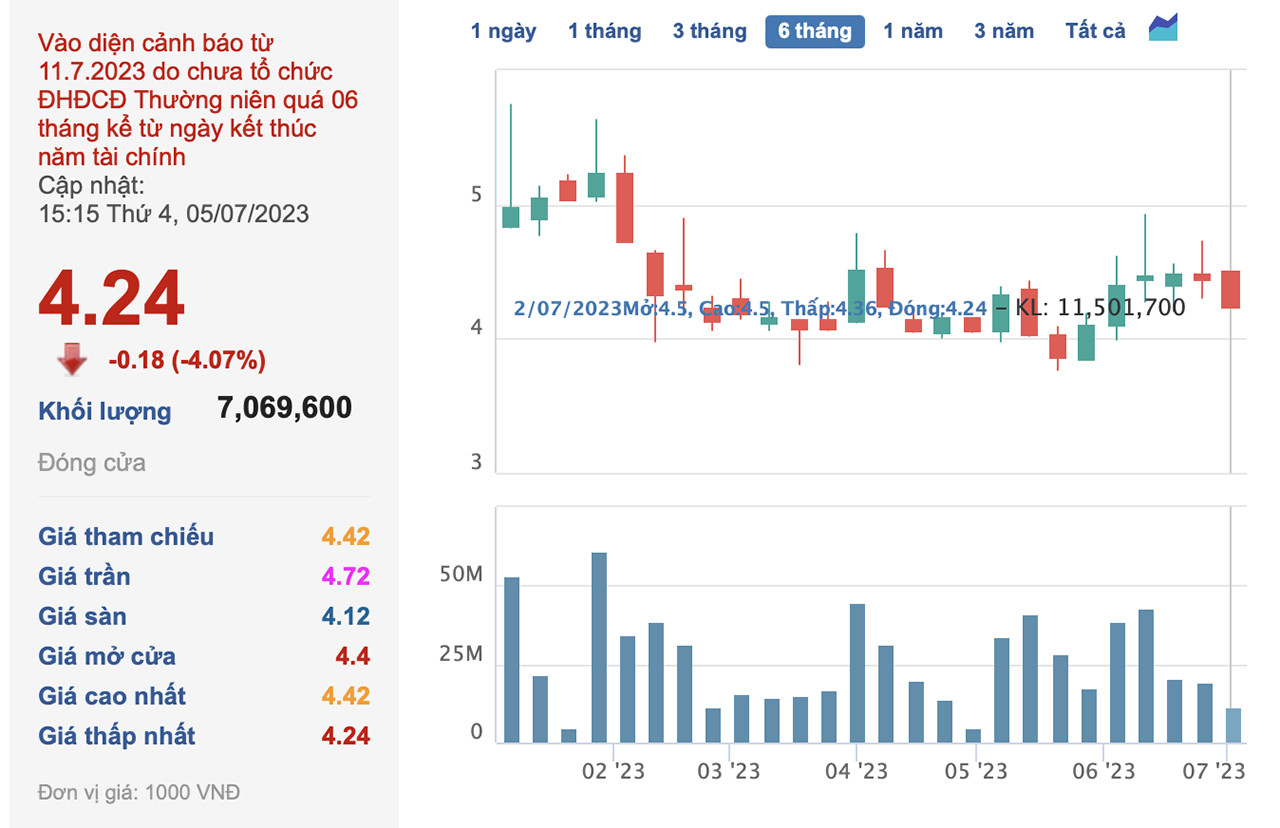 Tương tự, cổ phiếu IBC của CTCP Đầu tư Apax Holdings do ông Nguyễn Ngọc Thủy (từng gọi là Shark Thủy) làm Chủ tịch HĐQT bị đưa vào diện cảnh báo do chưa tổ chức đại hội cổ đông thường niên, đã quá 6 tháng kể từ ngày kết thúc năm tài chính 2022.