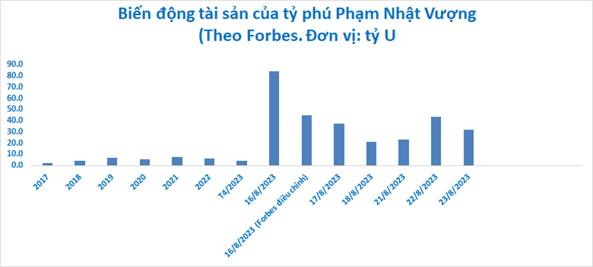 Đây là lần điều chỉnh thứ 2 của Forbes đối với ông Phạm Nhật Vượng, kể từ khi cổ phiếu VinFast lên sàn chứng khoán Nasdaq của Mỹ.