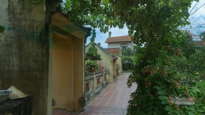 | Lối cửa phụ vào nhà từ đường được chủ nhân trồng giàn hoa tigôn, lấy bóng râm che nắng vào những ngày hè oi ả. |
