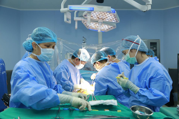 Ekip bác sĩ thực hiện ca ghép gan cấp cứu xuyên đêm cho bệnh nhân, kéo dài 14 tiếng