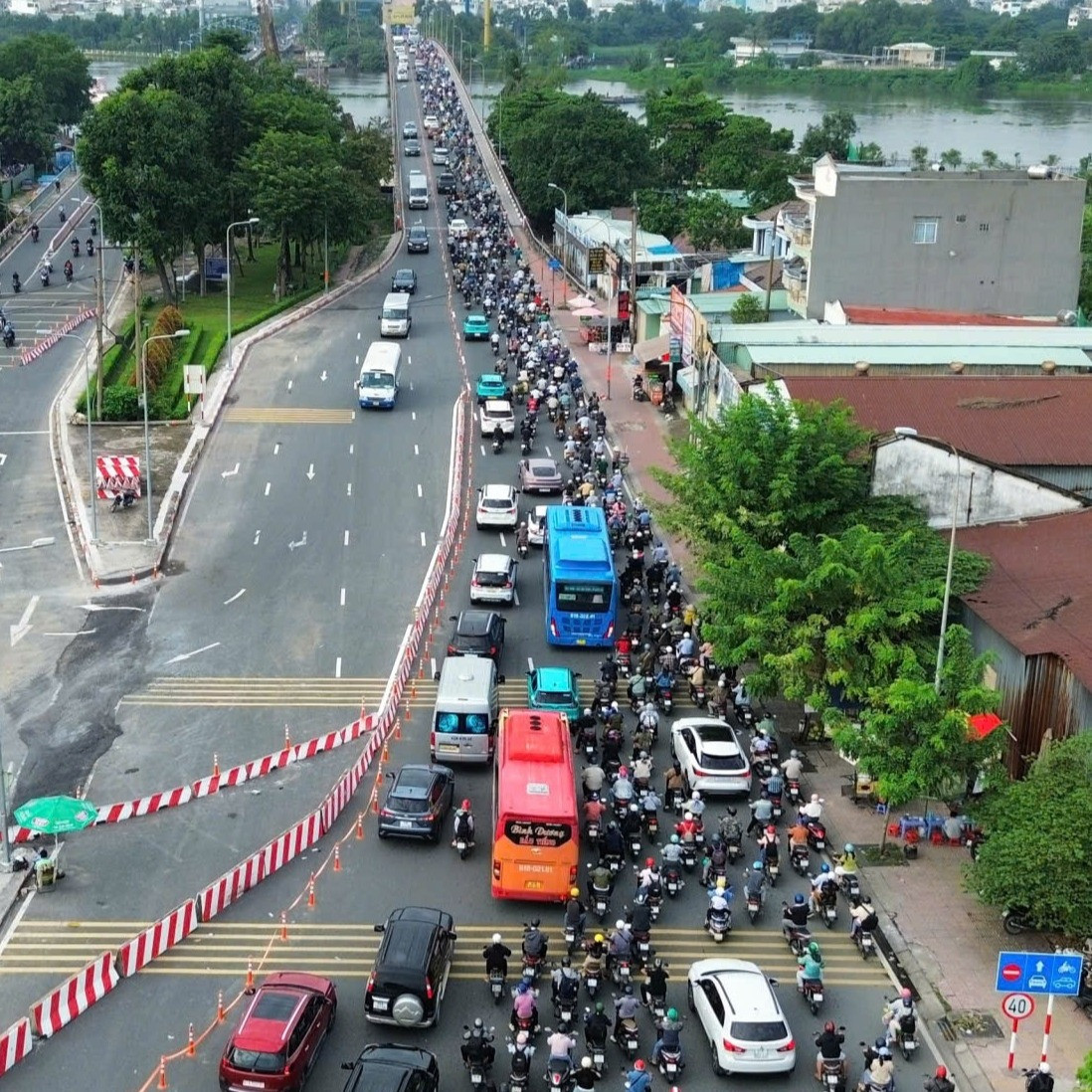 Sáng 27/8, hàng nghìn người dân TPHCM phải đối mặt với một "cơn ác mộng" giao thông ngay tại cửa ngõ phía Đông Bắc. Việc điều chỉnh luồng xe để phục vụ thi công nâng tĩnh không cầu Bình Triệu 1 đã khiến khu vực này rơi vào cảnh ùn tắc chưa từng có, biến tuyến đường huyết mạch thành "biển kẹt xe" kéo dài.