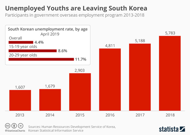 Tỷ lệ giới trẻ Hàn Quốc thất nghiệp tăng dần đều qua các năm. |