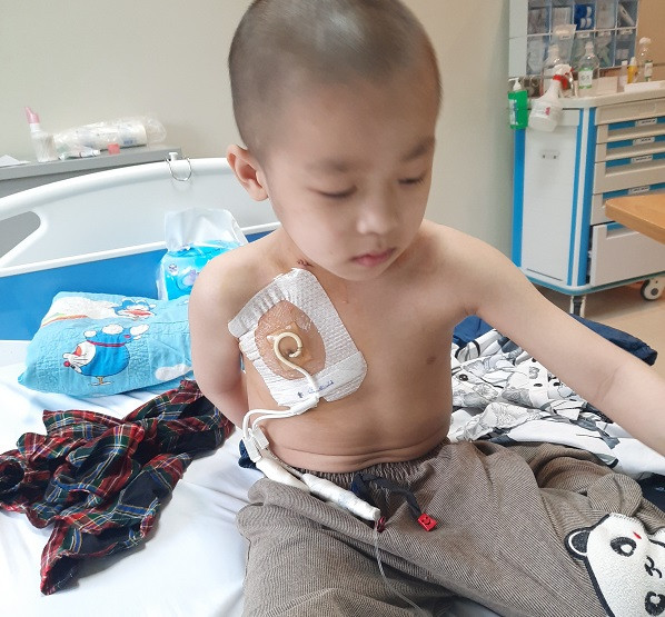 12 đợt truyền hóa chất trở thành thử thách khắc nghiệt đối với cơ thể đứa bé mới 6 tuổi. Chứng kiến con bị tác dụng phụ của hóa chất dày vò như “chết đi sống lại” từng cơn, chị Tăng đau lòng như muốn ngất đi, không dám đối mặt với hiện thực.