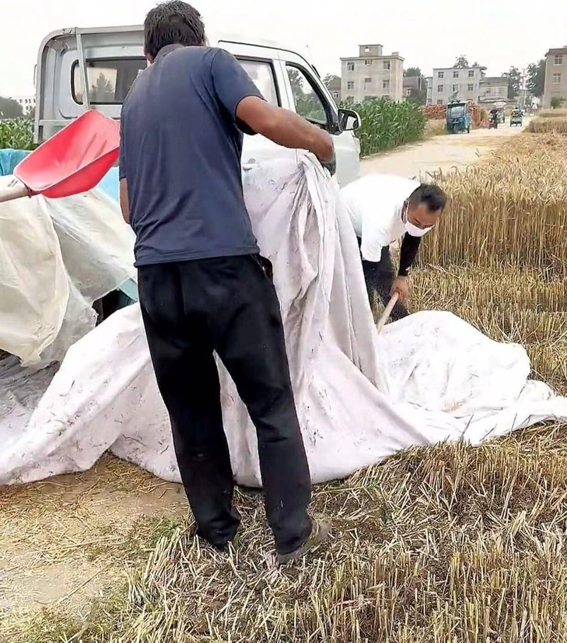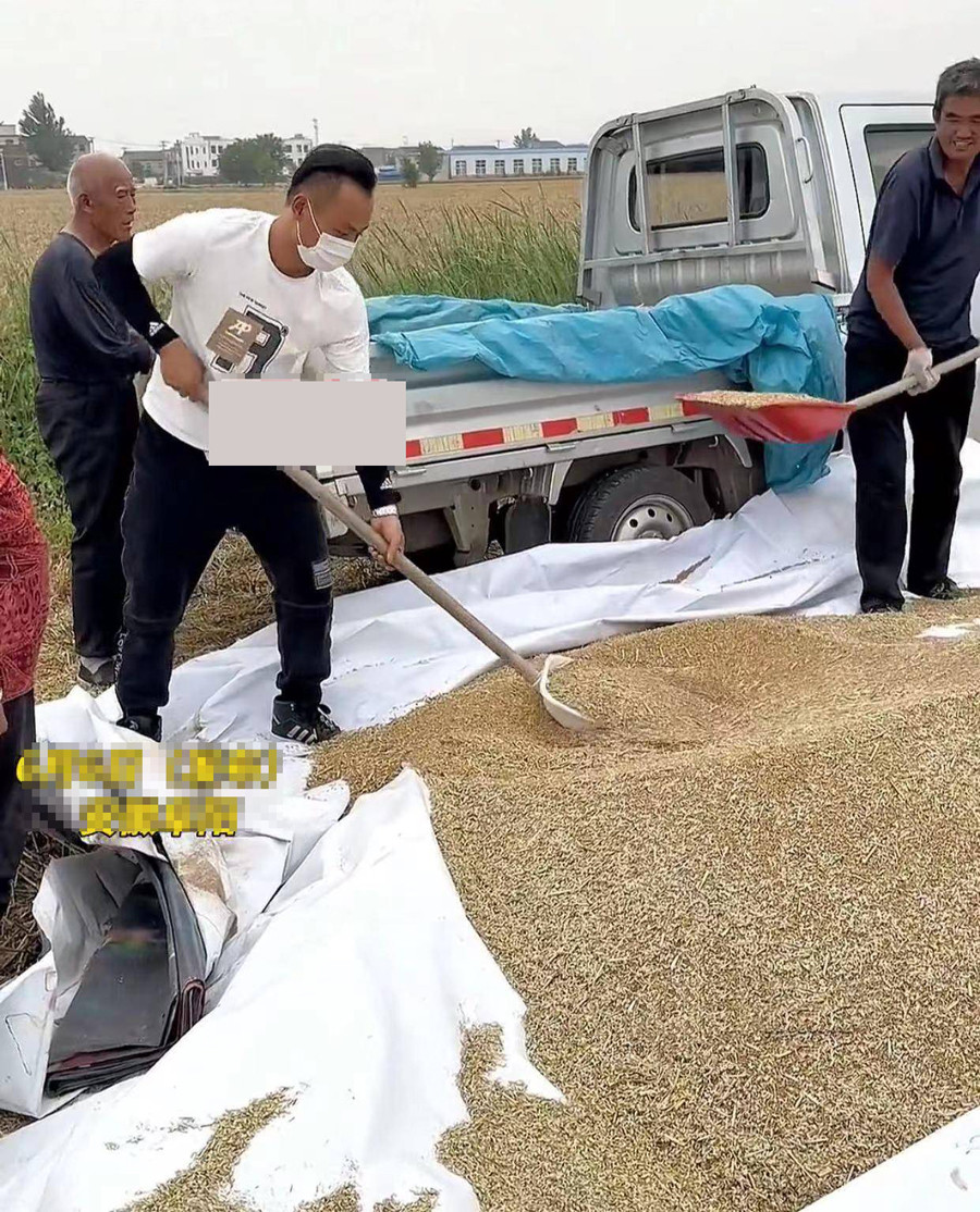 Thấy cảnh bố chồng cũ và chồng cùng nhau làm việc đồng áng, chất lúa lên xe, cô không kìm được lòng, lấy điện thoại ghi hình lại.