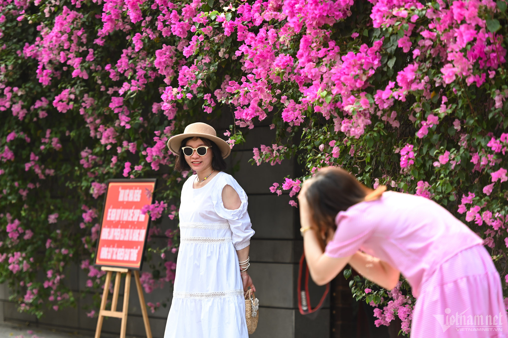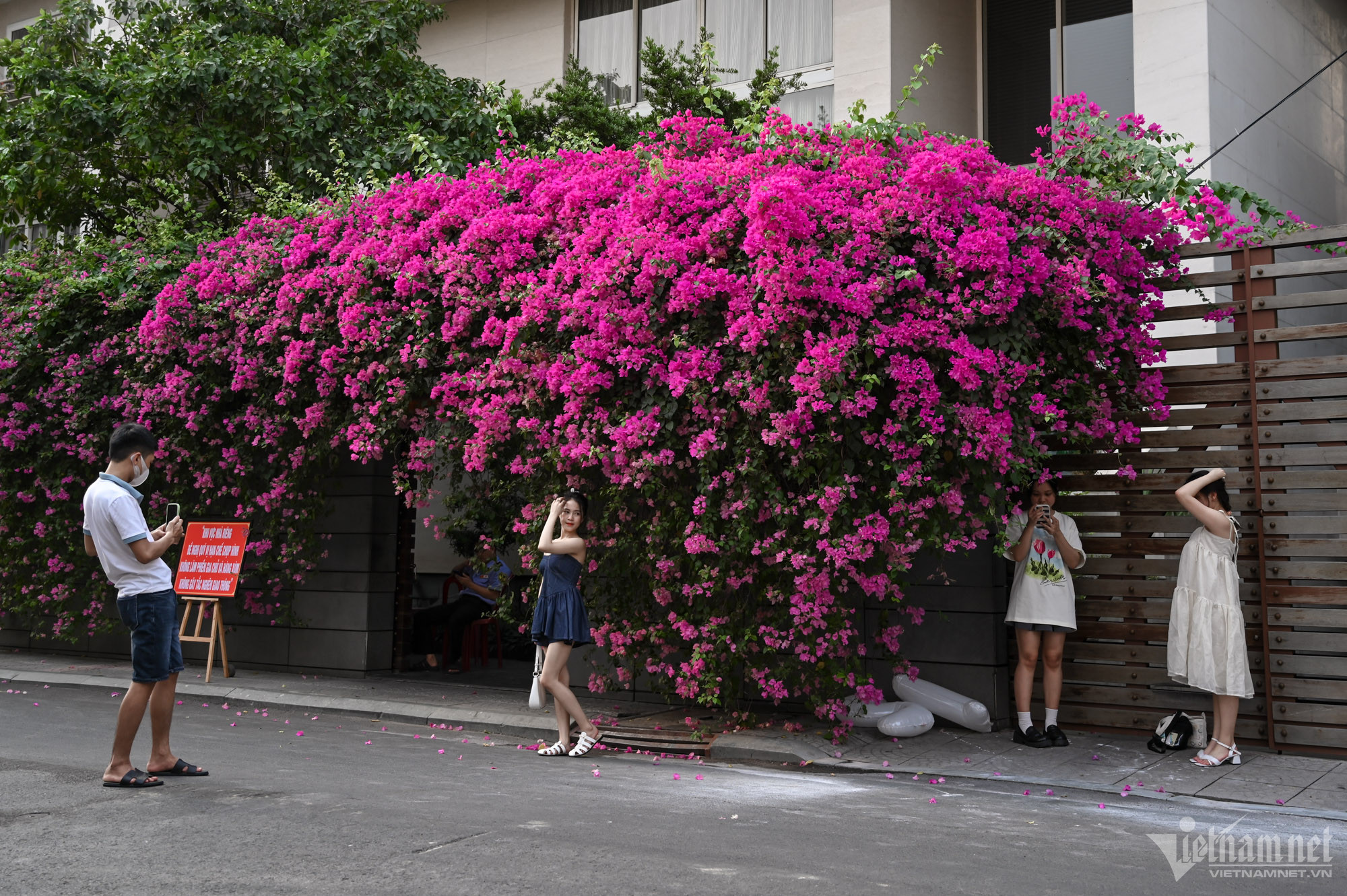 Chị Thanh Hà (quận Bình Thạnh) biết đến con đường hoa giấy này qua mạng xã hội. "Thật không dễ để tìm được giàn hoa giấy to, phủ kín tường như tấm thảm. Hoa giấy tạo nên một nét rất tình, rất thơ cho thành phố này", chị chia sẻ.