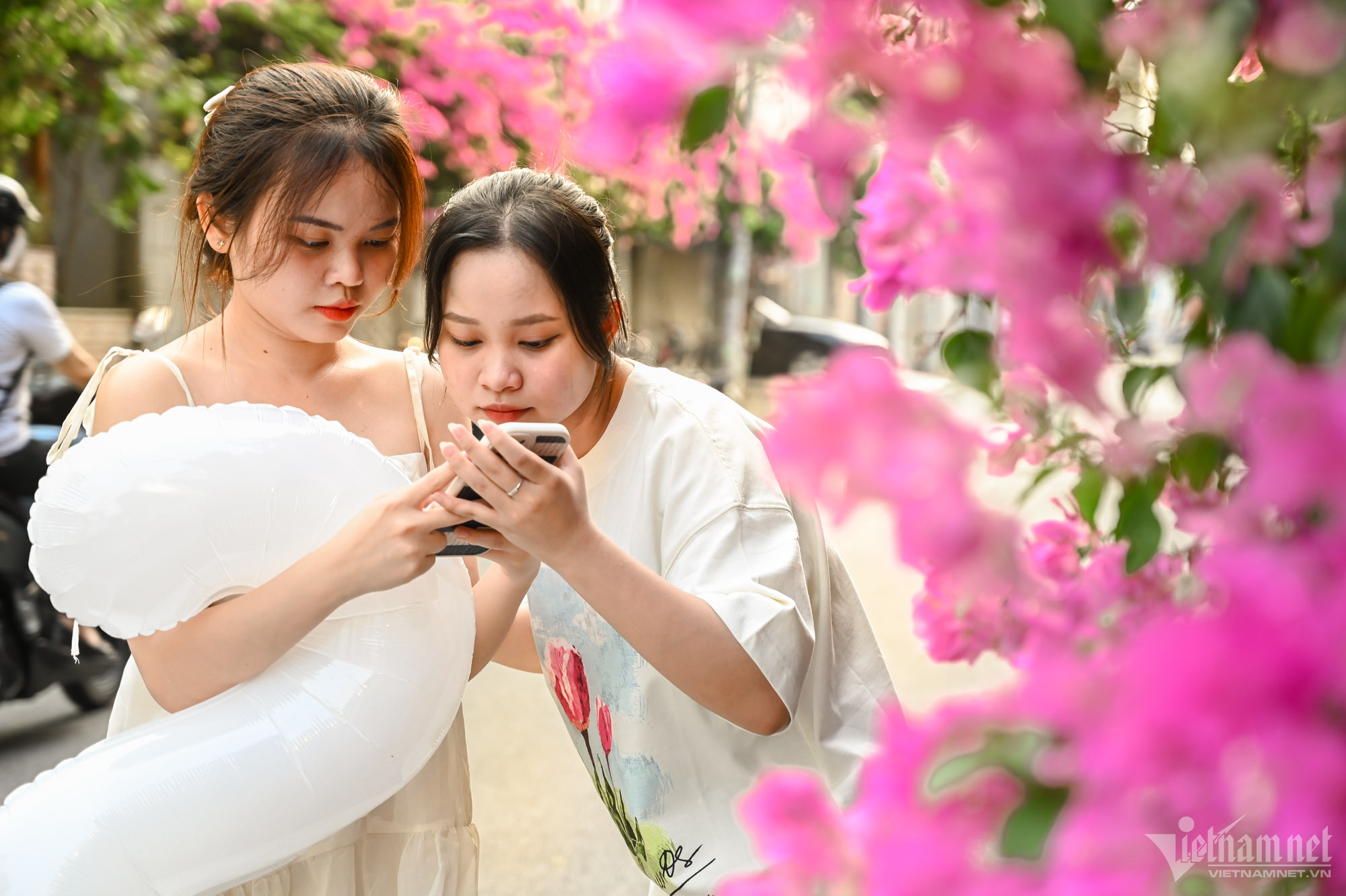 Nắng lên rực rỡ, hàng hoa giấy càng trở nên tươi sắc.