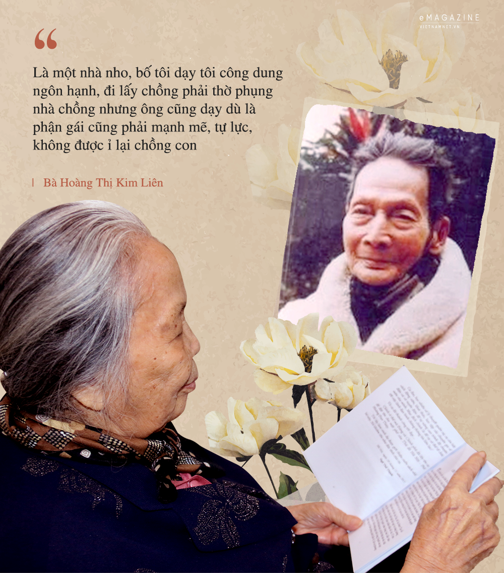 “Khi dạy tôi tự học ở nhà, ông dạy rất kỹ về lịch sử, về đất nước mình để từ đó khơi dậy lòng yêu nước, lòng tự hào dân tộc. Ngoài dạy chữ, ông còn dạy tôi về Nữ tắc - một bộ quy tắc ứng xử dành cho phụ nữ bằng thơ. Nữ tắc dạy cho các cô các phép tắc, lễ nghĩa theo quan niệm xưa: con gái ở nhà phải vâng lời cha mẹ, đi lấy chồng thì phải thờ phụng nhà chồng, phải ăn ở, đi lại ra sao”.