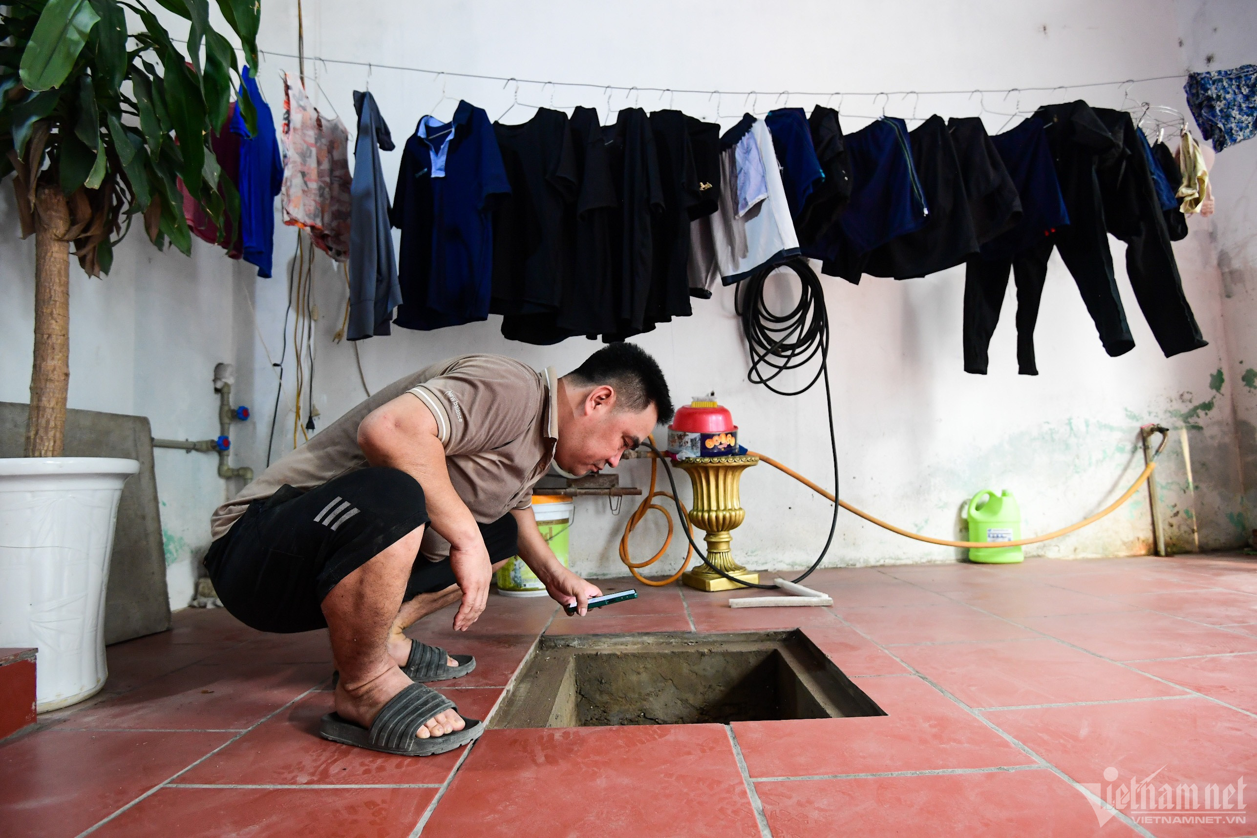 "Chúng tôi khá băn khoăn khi phải dùng nước giếng khoan. Nước phải qua 3 tầng lọc mới dám bơm lên bể. Sử dụng rất chắt chiu, nhiều lúc nước rửa rau phải tích lại để rửa bát", ông Vụng nói thêm.