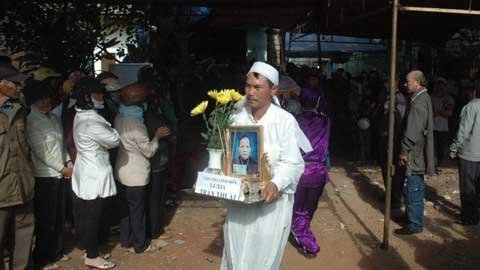 | Cảnh đám tang mẹ con bà Ái. Họ bị sát hại hết sức dã man |