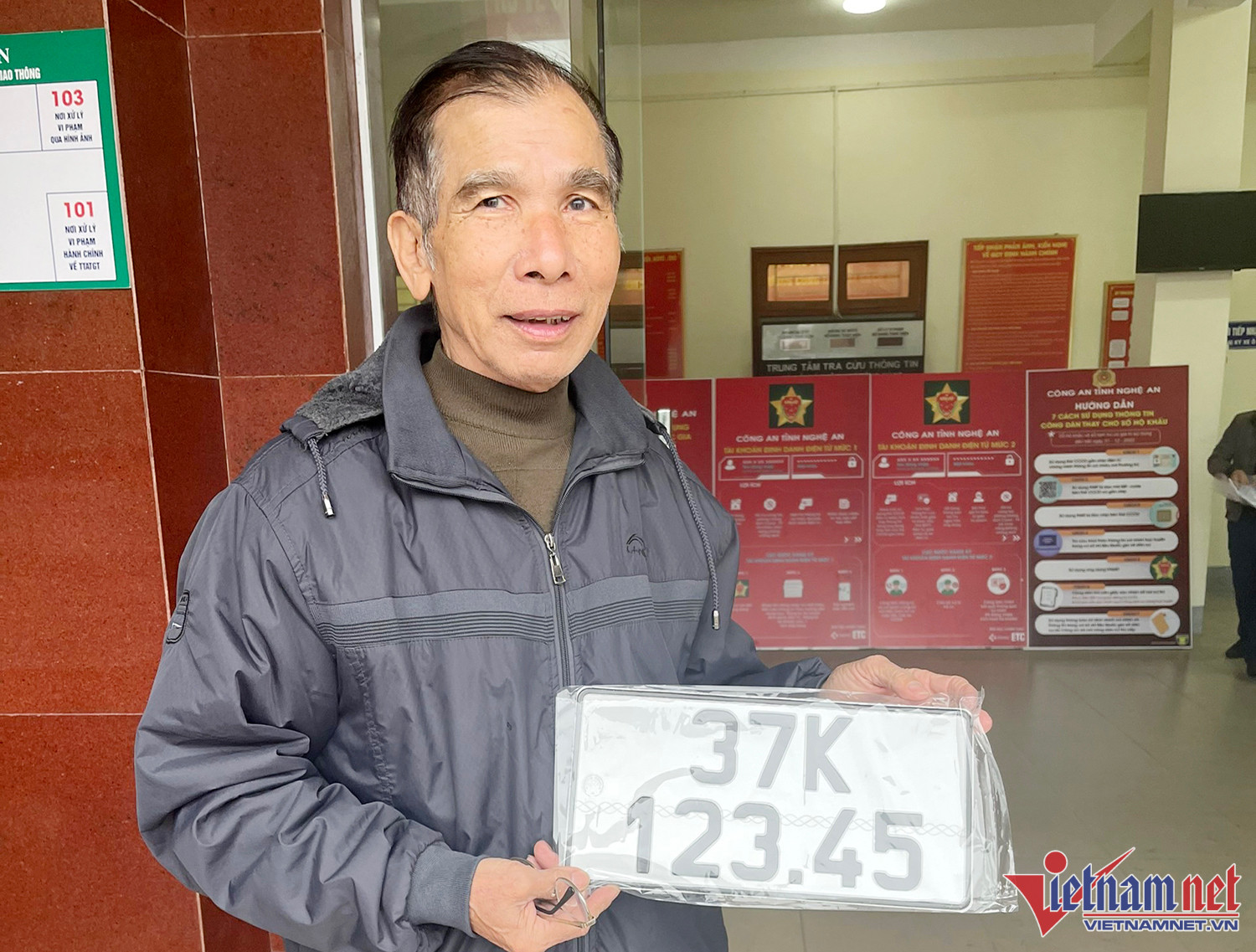 Chị Đặng Thị Giang cho biết: “Biển số ô tô 37K-123.45 là do bố tôi bấm ngẫu nhiên. Chiếc xe này do con rể mua tặng cho bố mẹ để có phương tiện đi lại".