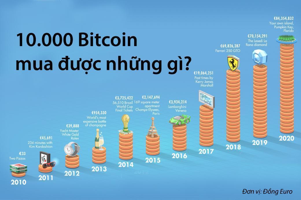 Giá trị của Bitcoin biến đổi từ năm 2010-2020.