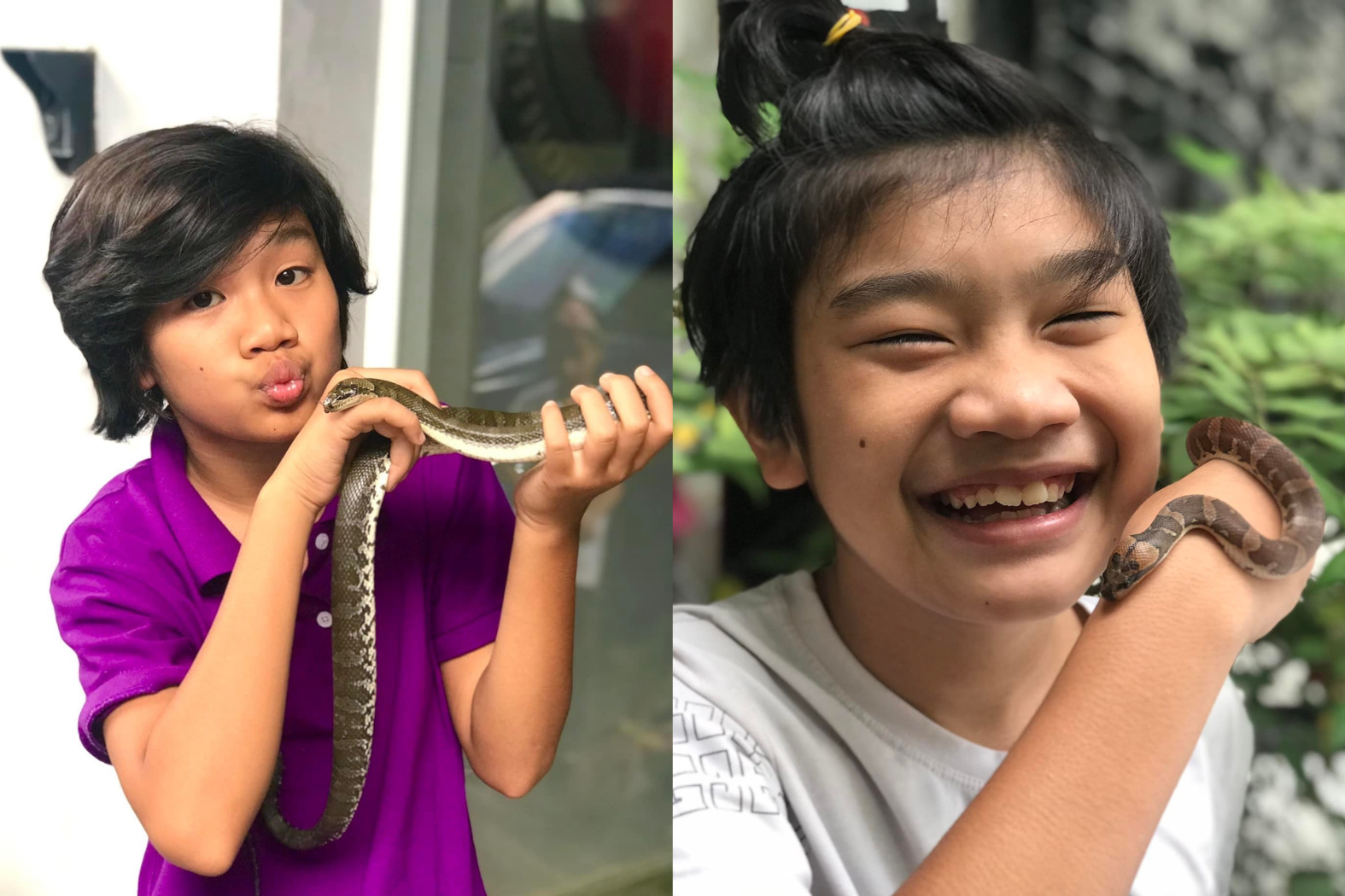 Bé Kỳ Phong tự tin bắt rắn bằng tay không (Ảnh: Facebook nhân vật).