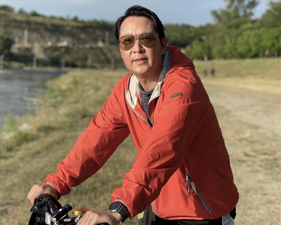 Nhạc trưởng Lê Phi Phi yêu thích việc đạp xe, hòa mình vào thiên nhiên (Ảnh: Facebook nhân vật).