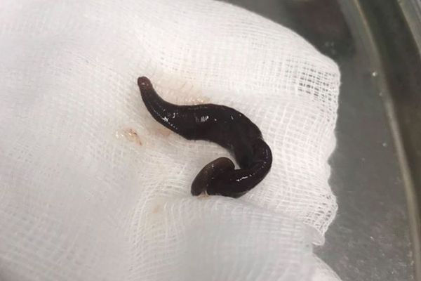 Con vắt được gắp ra khỏi mũi bệnh nhi