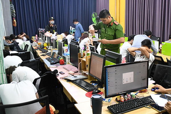 Tại hiện trường, lực lượng làm nhiệm vụ thu giữ nhiều tài liệu, laptop chứa hình ảnh cắt ghép nhằm xúc phạm danh dự nhân phẩm, vu khống người khác, chửi bới, đe dọa nạn nhân...