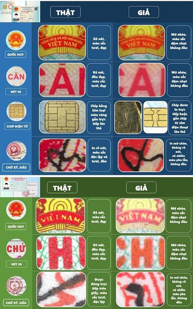 Các nội dung, chi tiết, kí tự, hình mẫu và chip gắn trên thẻ căn cước công dân tuân thủ tuyệt đối quy định của pháp luật, có đặc trưng, đặc thù riêng không thể làm giả dù thủ đoạn công nghệ có tinh vi.