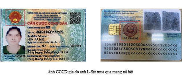 Anh L.V.L. (ngụ huyện Thanh Bình, Đồng Tháp) do không có thời gian đi làm căn cước công dân nên lên Facebook tìm người làm giúp. Anh L. được các đối tượng cam kết nhận làm căn cước công dân giống 100% căn cước công dân thật. Tưởng thật, anh L. đặt mua căn cước công dân giả với giá gần 1,8 triệu đồng.