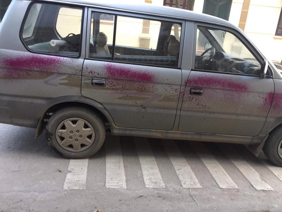 Hà Nội: Lái xe ngã ngửa nhìn ô tô bị xịt sơn hồng chằng chịt
