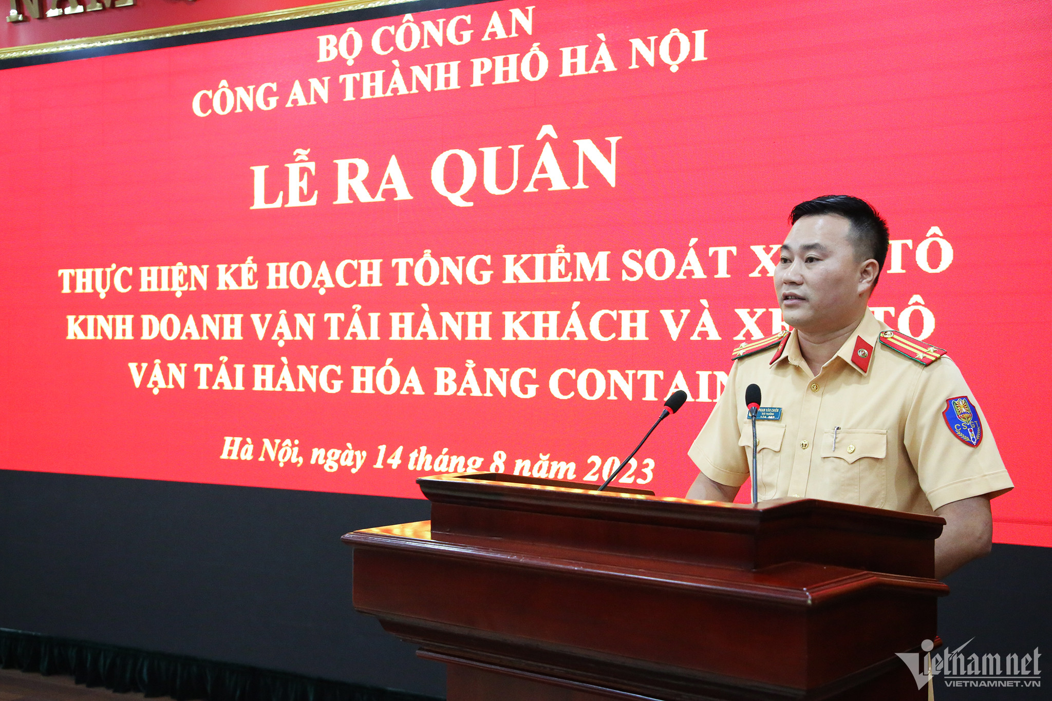 Cũng tại buổi ra quân, Trung tá Phạm Văn Chiến- Đội trưởng Đội CSGT đường bộ số 6 (Phòng CSGT Công an TP Hà Nội) thay mặt các Đội thuộc Phòng CSGT và 30 Đội CSGT - Trật tự Công an các quận, huyện, thị xã... thể hiện quyết tâm xử lý triệt để các vi phạm của ô tô kinh doanh vận tải hành khách và xe container.