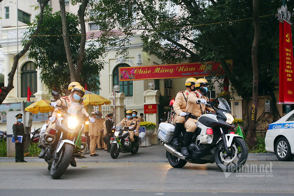 Nhiều thanh niên đi xe máy không đội mũ bảo hiểm, liều lĩnh quay đầu xe, chạy ngược chiều khi gặp tổ công tác 141, Công an TP Hà Nội.