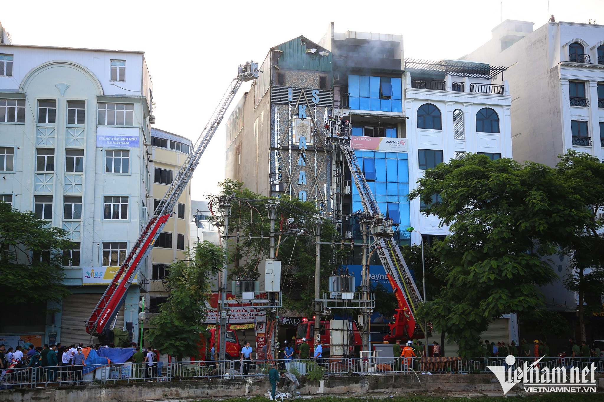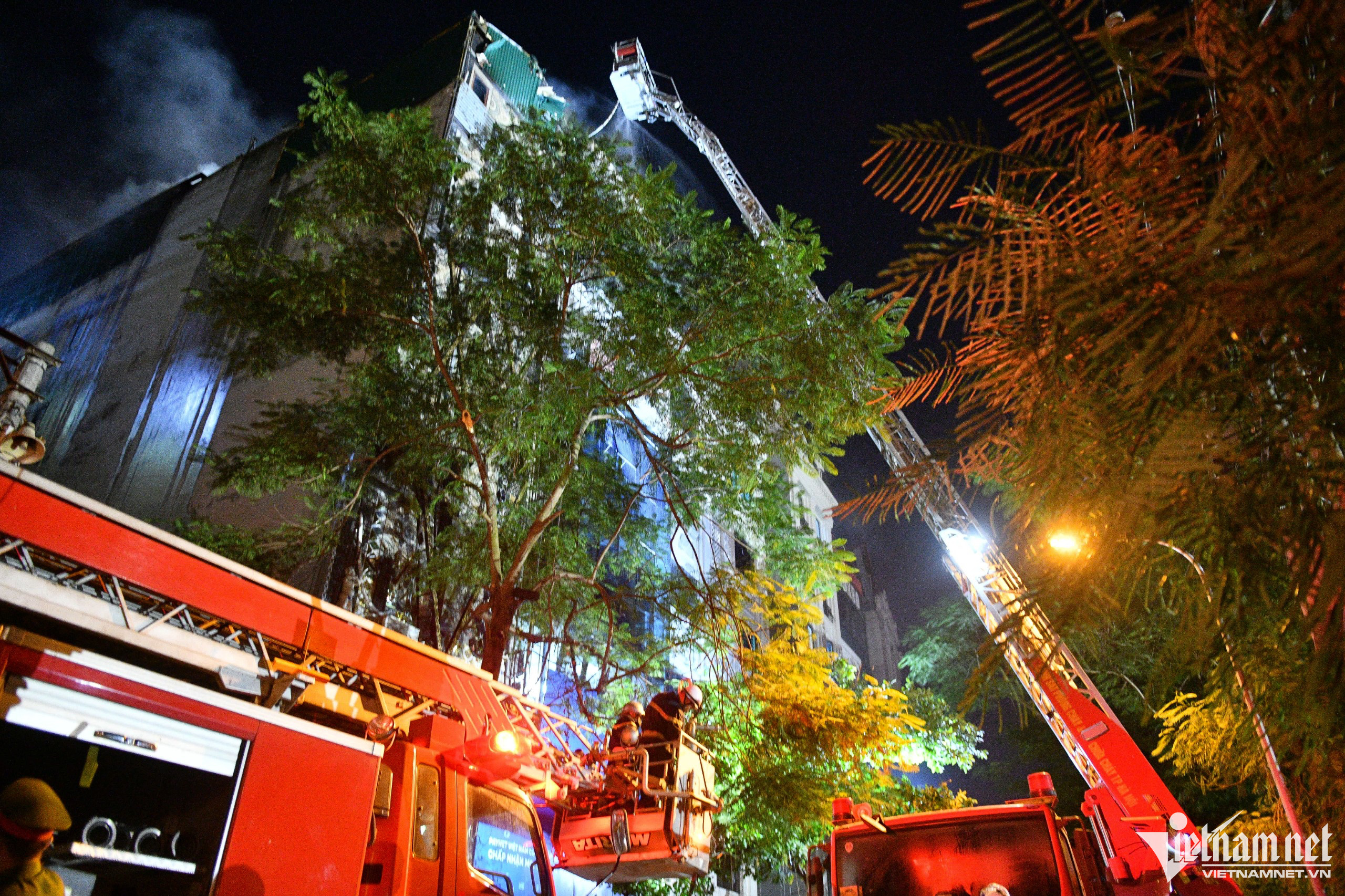 Tình hình đám cháy phức tạp, Trung tâm điều động lực lượng chi viện từ 4 Đội Cảnh sát PCCC&CNCH thuộc Công an quận Cầu Giấy, Đống Đa, Hoàn Kiếm và Đội Chữa cháy và CNCH Khu vực 2 (Phòng Cảnh sát PCCC&CNCH) với 5 xe chữa cháy, 2 xe thang, 1 xe cứu hộ, 1 xe téc nước, 1 xe tải chở phương tiện đến hiện trường.