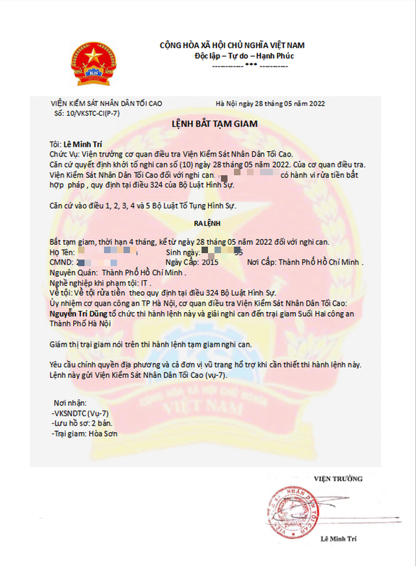 Trong lúc lúng túng, anh H. cung cấp thông tin cá nhân thì ngay lập tức nhận được đường link "1.84113vn.com", "nữ điều tra viên" yêu cầu anh truy cập thì hiện ra các mục con như "Hệ thống kiểm kê trực tuyến", "Phần mềm bảo mật", "Hệ thống tội phạm truy nã". Theo hướng dẫn, anh H. tiếp tục nhấp vào mục "Hệ thống tội phạm truy nã" thì thấy hiện ra lệnh bắt giam anh có con dấu, chữ ký, tên của Viện trưởng VKSND Tối cao.