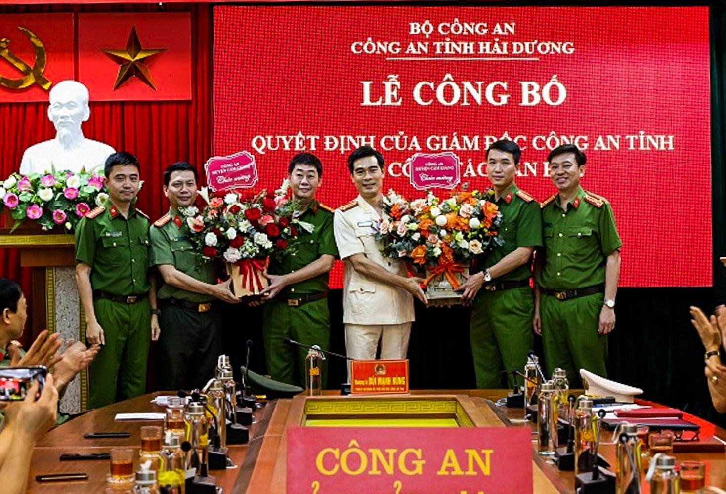 Cụ thể, Thượng tá Nguyễn Đức Thìn, Trưởng Công an huyện Cẩm Giàng đến nhận công tác và giữ chức vụ Trưởng phòng Tổ chức cán bộ. Thượng tá Nguyễn Hoàng Long, Trưởng phòng Tổ chức cán bộ đến nhận công tác và giữ chức vụ Trưởng Công an thành phố Chí Linh. Thiếu tá Nguyễn Văn Đức, Phó Công an TP Chí Linh đến nhận công tác, giữ chức vụ Trưởng Công an huyện Cẩm Giàng.