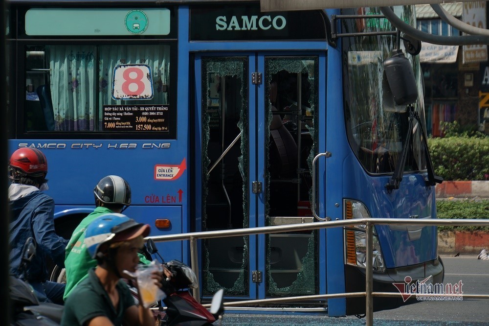 Xe buýt Sài Gòn bị nhóm người cầm hung khí đập vỡ kính trên phố