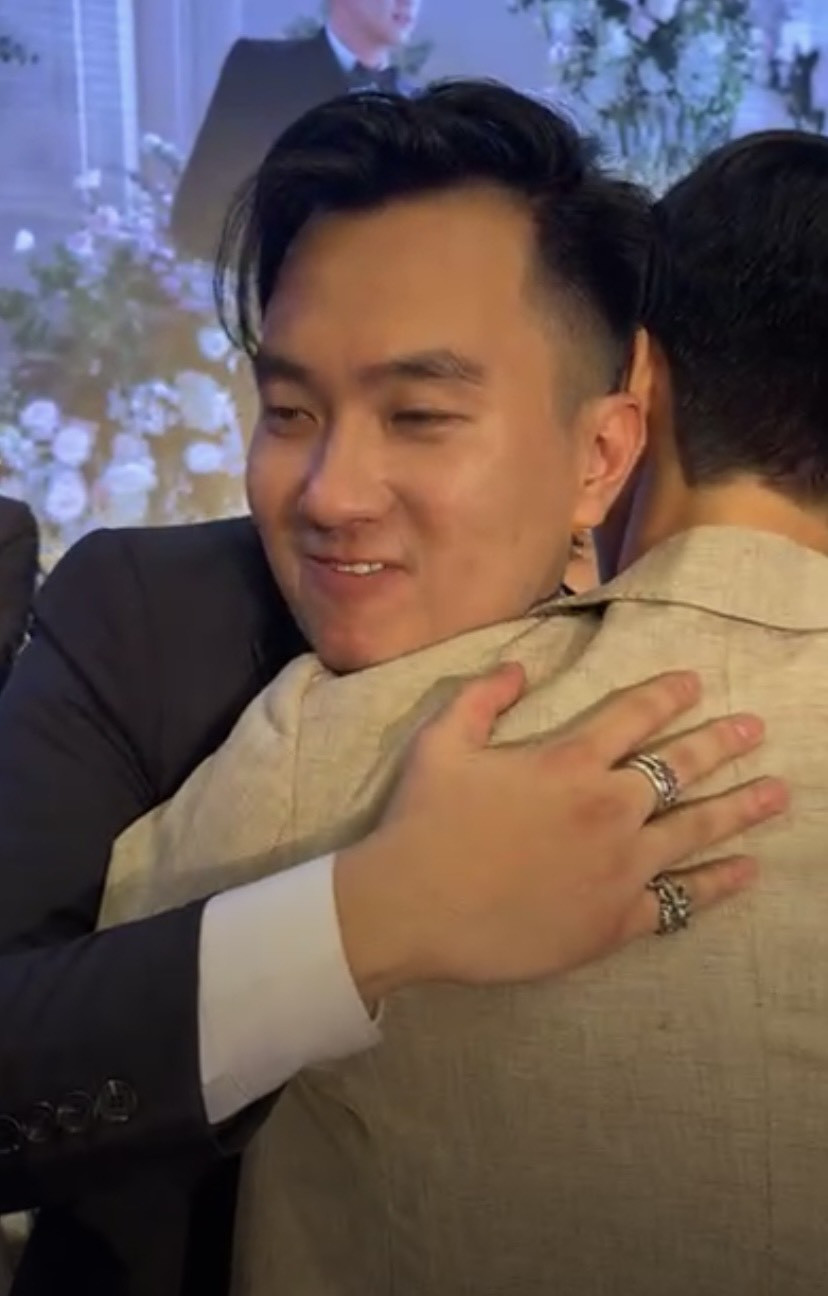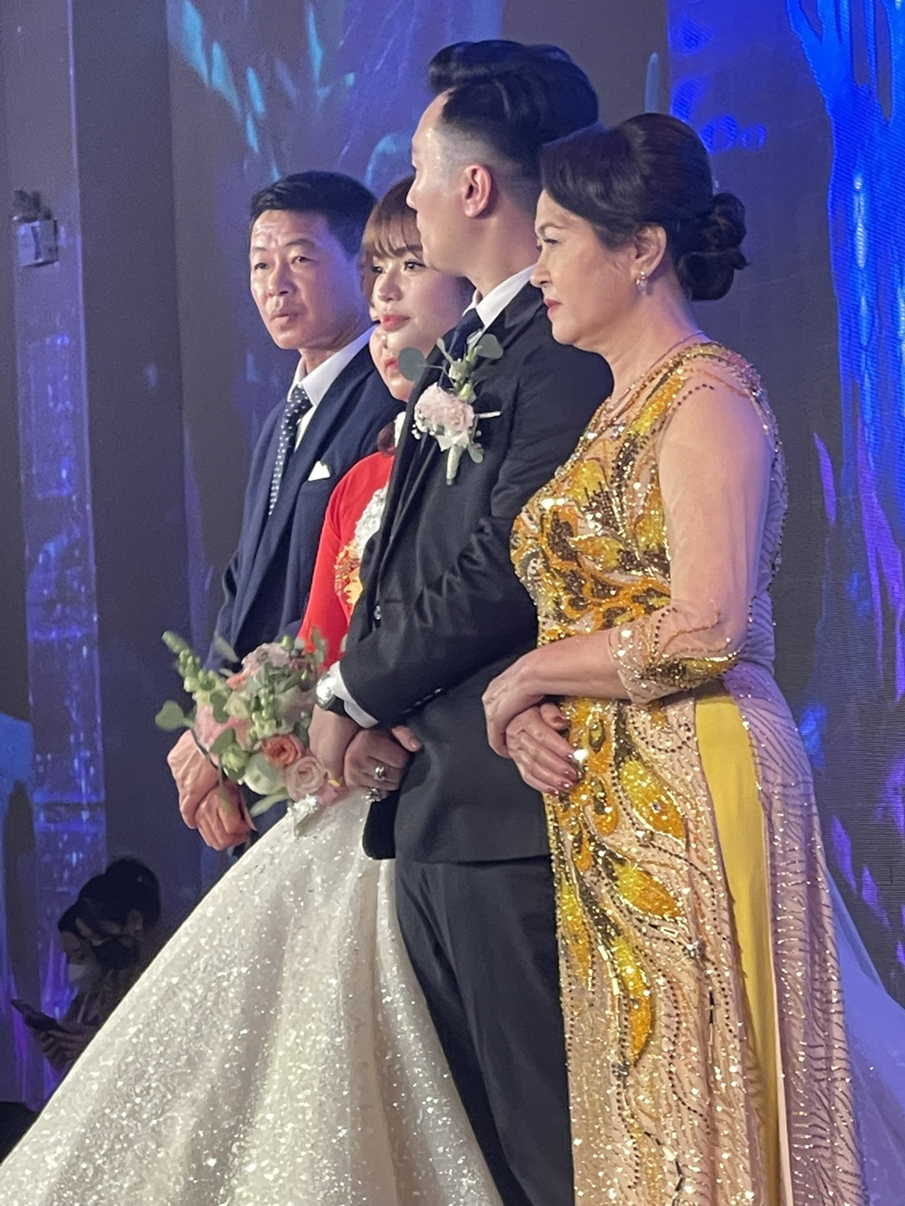 Tối 7/5, lễ cưới chính thức của diễn viên Anh Tuấn 'Phố trong làng' diễn ra tại Hà Nội. Chú rể Anh Tuấn và cô dâu Diễm Quỳnh rạng ngời hạnh phúc trong ngày vui của mình.Trong đám cưới, Anh Tuấn hát trong đám cưới đón cô dâu từ tay của bố vợ. Nam diễn viên cũng quỳ gối trao nhẫn cho vợ trước sự chứng kiến của gia đình, bạn bè thân thiết."Tất cả những người đang có mặt trong khán phòng ngày hôm nay, trong lúc này xuất hiện trong cuộc đời của Tuấn đều có những câu chuyện riêng, lý do riêng. Tuấn xin phép được gửi lời cảm ơn tới tất cả mọi người đã gửi lời chúc tốt đẹp nhất tới Tuấn và Quỳnh", chú rể Anh Tuấn phát biểu trong đám cưới.Cô dâu Diễm Quỳnh diện chiếc váy bồng bềnh trong ngày trọng đại. Anh Tuấn cẩn thận nâng váy cho vỡ trong lễ cưới.Cặp đôi trao nhau cái nhìn ngọt ngào khi rót rượu.Đạo diễn Trọng Trinh có mặt trong lễ cưới của Anh Tuấn. Ông xưng bố, con với Anh Tuấn và chúc nam diễn viên trăm năm hạnh phúc.Huỳnh Anh và bạn gái có mặt từ sớm dự lễ cưới. "Chúc cho Tuấn trăm năm hạnh phúc, cảm ơn Tuấn đã là một sợi dây kết nối cho Huỳnh Anh và Phương", Huỳnh Anh nói."Tuấn là một cậu bé rất ngoan nên chị tin cuộc sống của em sẽ có nhiều niềm vui. Chúc em sớm có em bé vui cửa vui nhà", diễn viên Thanh Hương chia sẻCông an Đông 'Phố trong làng' cũng có mặt chung vui cùng Anh Tuấn.Diễn viên Anh Vũ chúc diễn viên Anh Tuấn vững vàng trong cuộc sống và hôn nhân.Anh Tuấn ôm Bình An, cảm ơn tình cảm của mọi người dành cho vợ chồng mình.