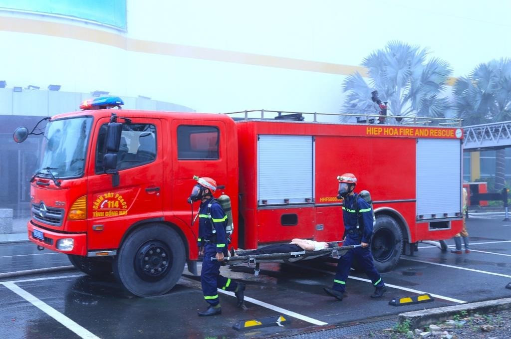Nhận được tin báo, Đội chữa cháy và CNCH khu vực Biên Hòa đã điều động các xe chữa cháy hiện đại gồm: 1 xe thang 52m, 2 xe chữa cháy, 1 xe CNCH, 1 xe bồn cùng 30 cán bộ, chiến sĩ đến hiện trường. Công an TP Biên Hòa cũng nhanh chóng xuất 2 xe chữa cháy và 12 cán bộ chiến sĩ Đội Cảnh sát PCCC&CNCH đến chữa cháy, Công an phường Long Bình, Đội Cảnh sát giao thông đến phối hợp bảo vệ và phân luồng giao thông.