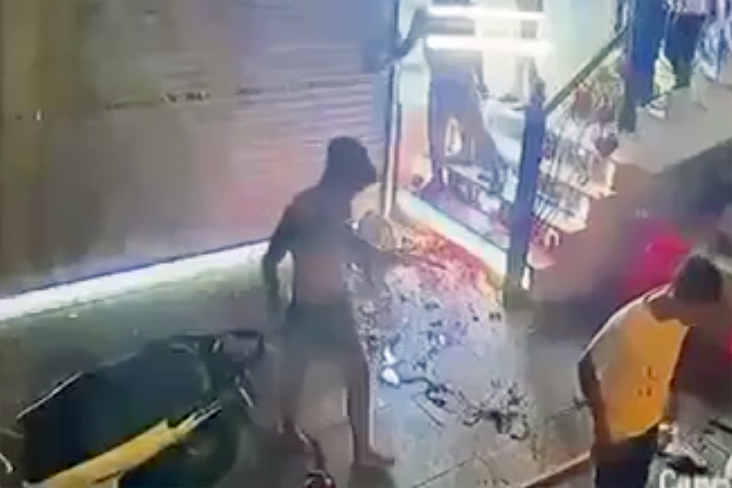 Hai nhóm thanh niên la lối, cầm hung khí tấn công và cầm đồ đạc ném vào nhau. Sự việc chỉ dừng lại khi cửa cuốn của quán này đóng lại.