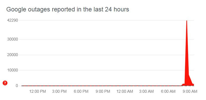 Số liệu từ trang DownDetector cho thấy, vào khoảng 8h30 sáng nay (9/8), website này nhận được một lượng lớn phản ánh của người dùng về những sự cố gặp phải với Google.