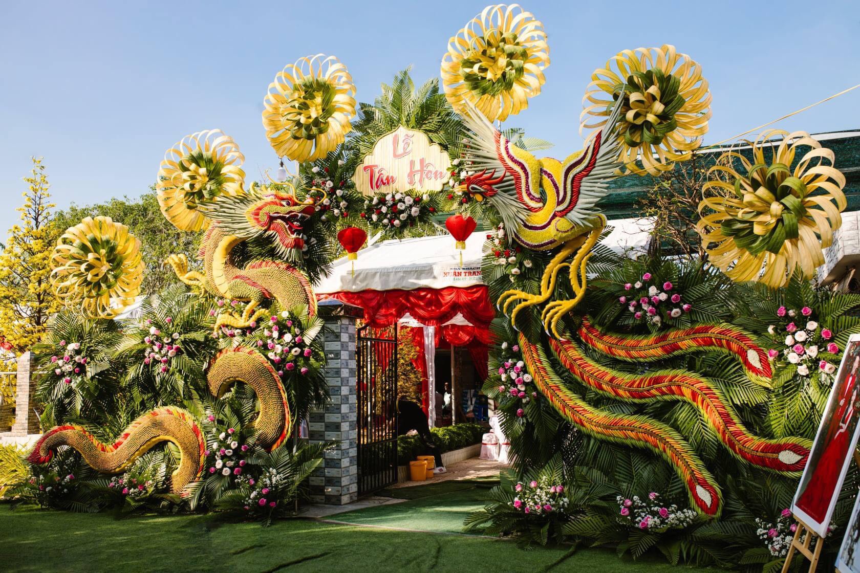 Cổng cưới hình rồng phượng khổng lồ ở Vĩnh Long. |