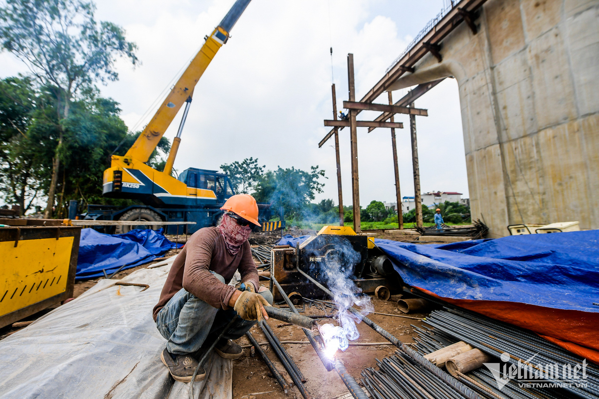 Với quyết tâm đưa dự án hoàn thành kịp tiến độ, hàng trăm công nhân vẫn miệt mài làm việc trong nắng nóng gay gắt.