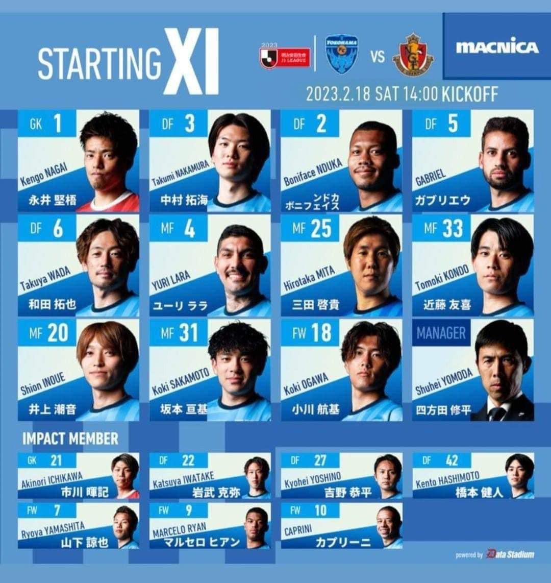 Tuy nhiên, chân sút sinh năm 1995 không có tên trong danh sách đăng ký thi đấu của Yokohama. Trên hàng công, HLV Shuhei Yomoda chỉ sử dụng một cái tên là Koki Ogawa.