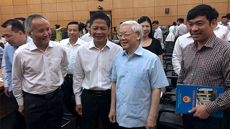 Tổng bí thư: “Buổi làm việc hôm nay và thực tế cho thấy chúng ta đang có khí thế, đang có quyết tâm mới, có ý chí mới, xốc lại đội ngũ, tiếp tục tiến lên. Đây là việc vô cùng quan trọng.”