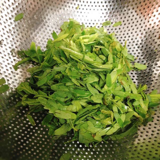 Nấm bào ngư ngâm muối loãng rửa lại sạch sẽ để ra rổ. Lá me bỏ phần thân già, rửa sạch.