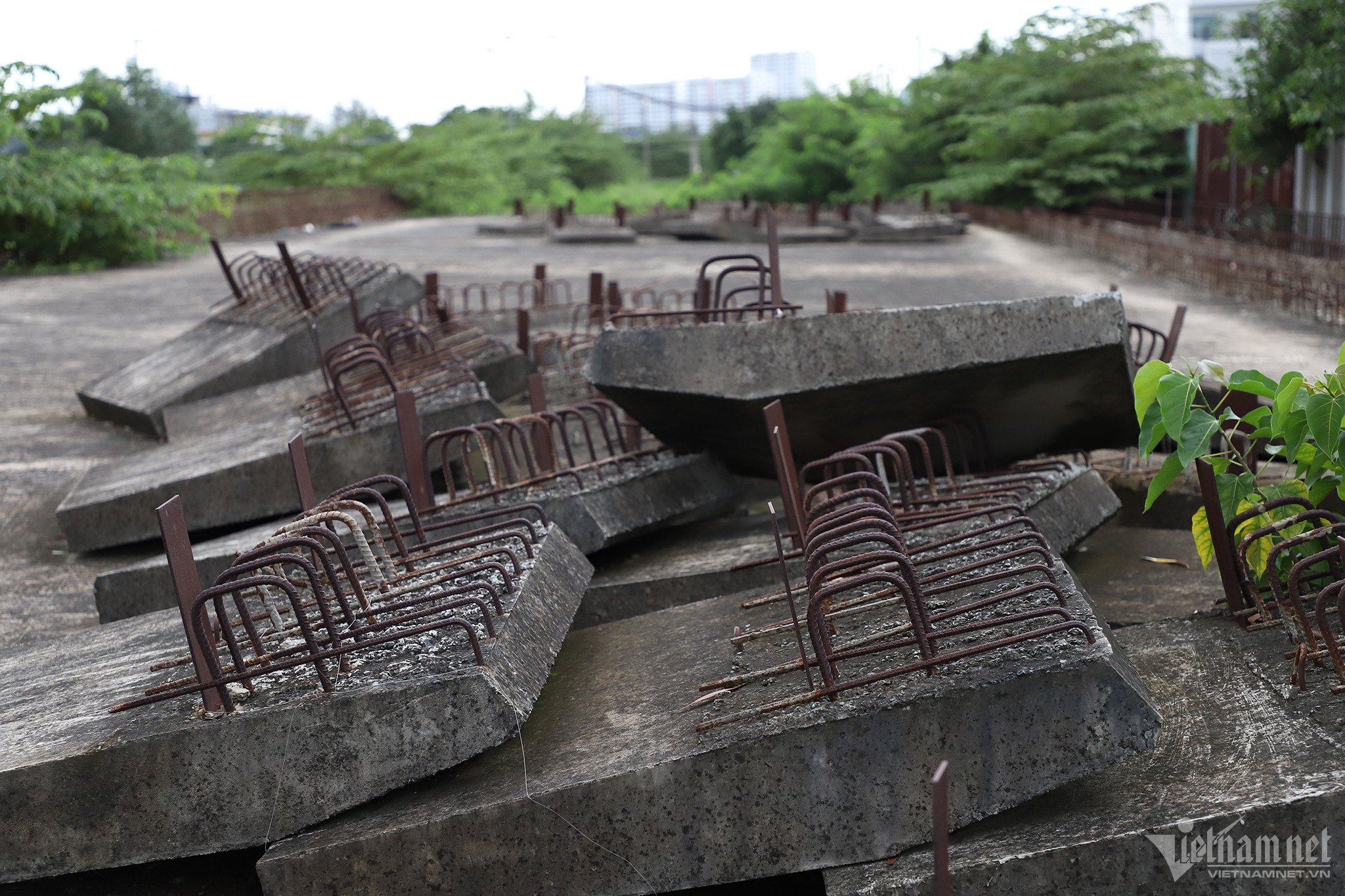 Nguyên nhân do vướng mắc trong thủ tục thanh toán quỹ đất cho nhà đầu tư, cùng với đó là nhiều khó khăn liên quan công tác đề bù, giải tỏa. Trong ảnh, nhiều kết cấu sắt, thép hoen gỉ theo thời gian.